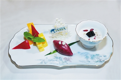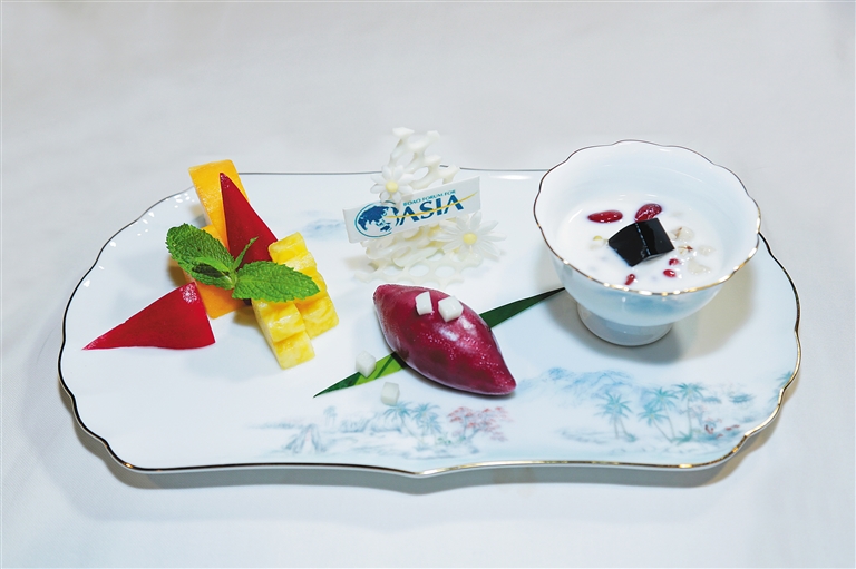 除了贝雕画、黎锦、椰雕花瓶这12件集中反映海南本土文化和传统技艺的工艺品,借助论坛年会平台成为国礼赠予与会外国政要外,论坛年会欢迎晚宴上,东山羊、和乐蟹、嘉积鸭、文昌鸡、山兰酒、清补凉、鹧鸪茶、咖啡等海南百姓熟知的“家常菜”也被端上宴会餐桌,成为国宴菜品。地道的海南美食配上极具海南风情的餐具,让在场的每位与会嘉宾尽享南国风光。