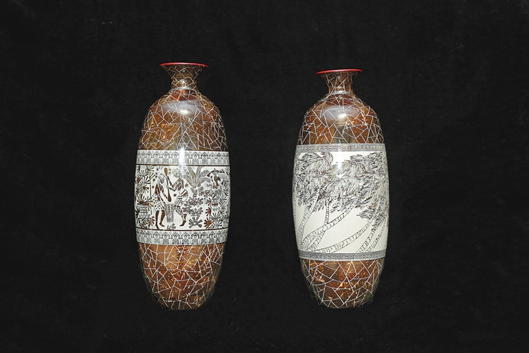 “以椰雕作国礼相赠,做什么好呢?”吴名驹回忆,设计之初,自己突然想到“一片冰心在玉壶”这么一句诗,于是便萌生了以椰壳为原料做一件椰雕花瓶的想法,将少数民族图案和椰风海韵雕刻在花瓶上。