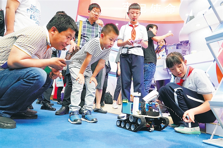 5月5日至7日,由教育部基础教育司主办的第三届全国基础教育信息化应用展示交流活动在位于北京的全国农业展览馆举行。全国31个省(区、市)和新疆生产建设兵团在为期3天的活动中展示本区域基础教育信息化应用成果,教育部遴选培育的75个基础教育信息化应用典型区域和学校案例在此期间发布。展示活动免费向公众开放。 新华社记者 沈伯韩 摄