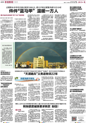 | 海南日报 本省新闻综合 005 2018-05-071 2018年05月07日 星期一 |