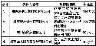四、收取保证金时间:2018年5月17日17:00前;以款到账为准;收取保证金单位名称:海南基石拍卖有限公司;开户行:中国农业银行海南省分行营业部;账号:21-100001040001981;