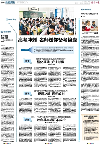 从本期开始,海南日报《教育周刊》推出“冲刺高考”栏目,特邀我省各学科名师从复习备考、心态调整等多方面为考生们答疑解惑、加油助威。