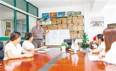 自4月中旬开始,昊利德国际旅行社有限公司聘请外教在午休时间开展英语培训,全体员工免费自愿参加。目的是帮助大家进一步提高英语水平,提升自身竞争力,把握海南自贸区(港)建设发展机遇,积极开拓涉外业务。