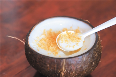 “要保障椰冻的美味,从选材开始就得层层把关。”王知华介绍,制作椰冻的椰子必须大小适中、熟嫩得当,椰子“腰围”得控制在36厘米到38厘米之间,而且不能有异味和沉淀。从原材料的挑选到椰冻的完成,必须在无菌条件下,经过28个加工环节。比如椰壳,也得经过机器初打磨,再由人工进一步细加工。“最重要的是,保证在制作过程中,不添加任何的糖分和人工调味品,必须保持椰子原有的香味和口感。”
