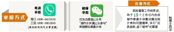 根据督查组职责,专项督查受理海口市、三亚市黑臭水体整治环境保护方面的来电和微信举报。
