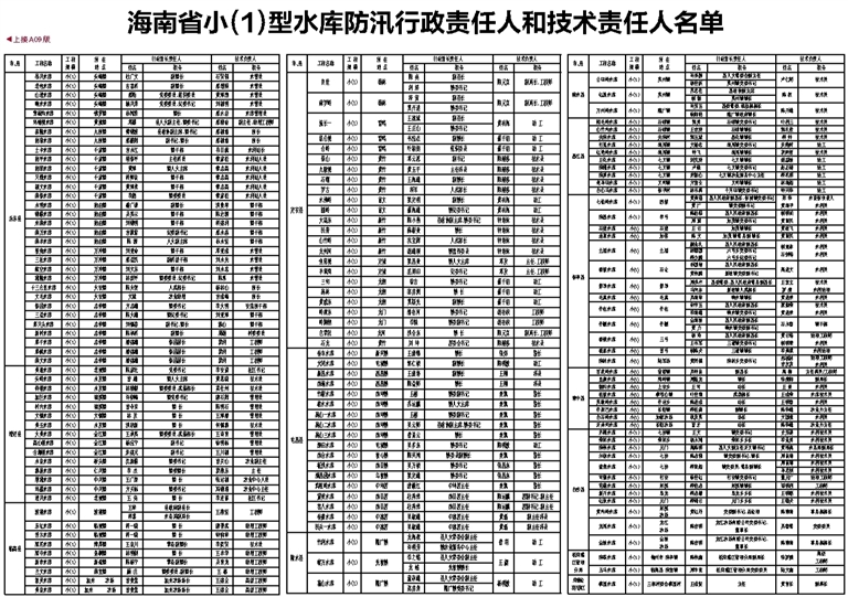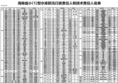 海南省小(1)型水库防汛行政责任人和技术责任人名单