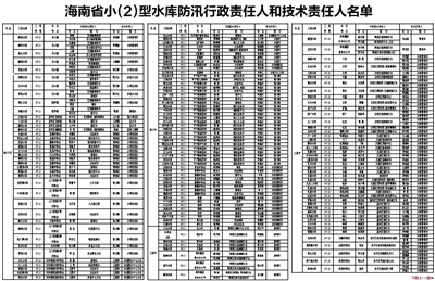 海南省小(2)型水库防汛行政责任人和技术责任人名单