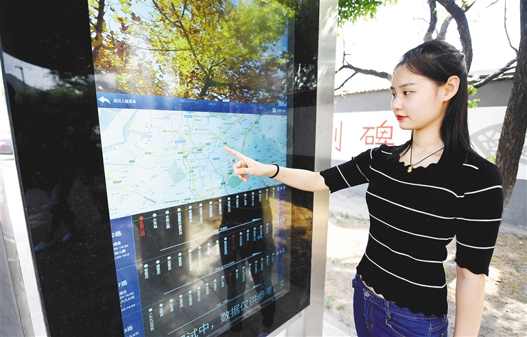 近日,河北张家口市下花园区在城区主要路段安装设置智能公交站亭。该站亭不仅能实时显示车辆到站、公交线路等交通信息,还可显示站点周边商业信息服务,同时支持公交导航、自驾导航、地点标注等十余项功能,方便市民出行。
