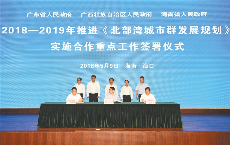 2017年1月20日,国务院批复《北部湾城市群发展规划》。1年多来,海南、广西、广东三省区共同建立决策层、协调层、执行层“三级运作”合作机制,联手推动《北部湾城市群发展规划》的落实,每年进行高层会晤,确定合作项目和专题,分解落实重点事项,北部湾城市群建设由此驶入快车道。