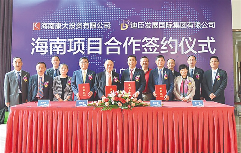 5月5日,在改革开放的前沿——深圳市,登喜路国际大酒店,康芝集团成员企业海南康大投资有限公司与香港迪臣发展国际集团有限公司举行海南项目合作签约仪式。为了充分发挥各自优势,实现互利共赢、共同成长,双方就海口市亚洲豪苑城市广场并购、打造国际儿童健康城及配套商业等项目签署了合作协议。