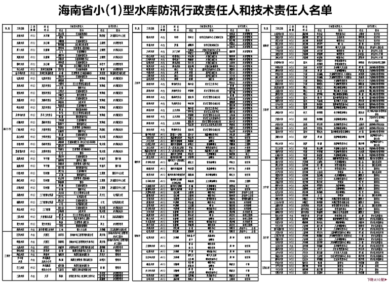 海南省小(1)型水库防汛行政责任人和技术责任人名单
