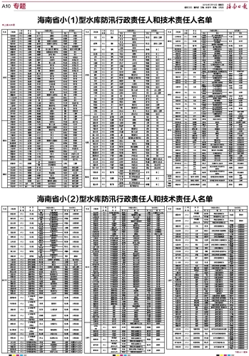 海南省小(2)型水库防汛行政责任人和技术责任人名单