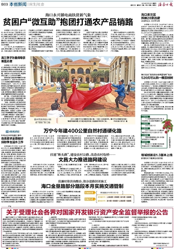 海南日报 本省新闻民生/社会 015 2018-05-101 2018年05月10日 星期四