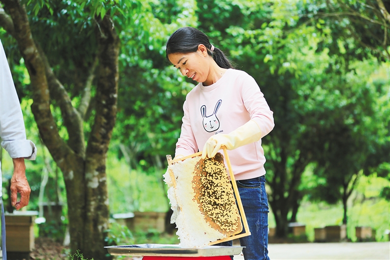 现场采蜜不仅提升了蜂产品的附加值,还能增加琼中“奔格内”乡村旅游品牌的内涵,促进农旅高度融合,实现经济效益和生态效益双丰收。