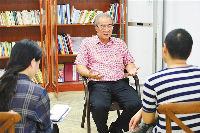 潘家海接受记者采访。 海报集团全媒体中心记者 陈卫东 摄