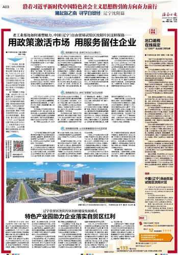 第003版:沿着习近平新时代中国特色社会主义思想指引的方向奋力前行潮起海之南寻学自贸经辽宁沈阳篇