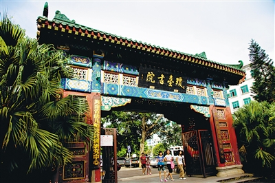从海口府城中山路走进琼台书院,院内绿树成荫,秀丽雅静。向里走去,一栋绿瓦红廊、古色古香的两层楼阁出现眼前,即著名的奎星楼。走在廊道之上,仿佛还能听见三百年来的朗朗书声……