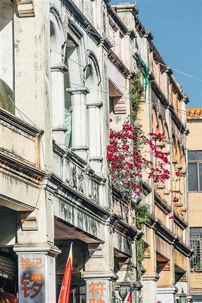 1899年,“广州湾”被法国“租借”,法国人沿海港设市,对外贸易曾繁盛一时。今天赤坎老街上的骑楼,是在上世纪20年代填海填出的陆地上建造而成。海口的骑楼老街,同样也是上世纪二十年代所建造,同样带有外来文化的气息。
