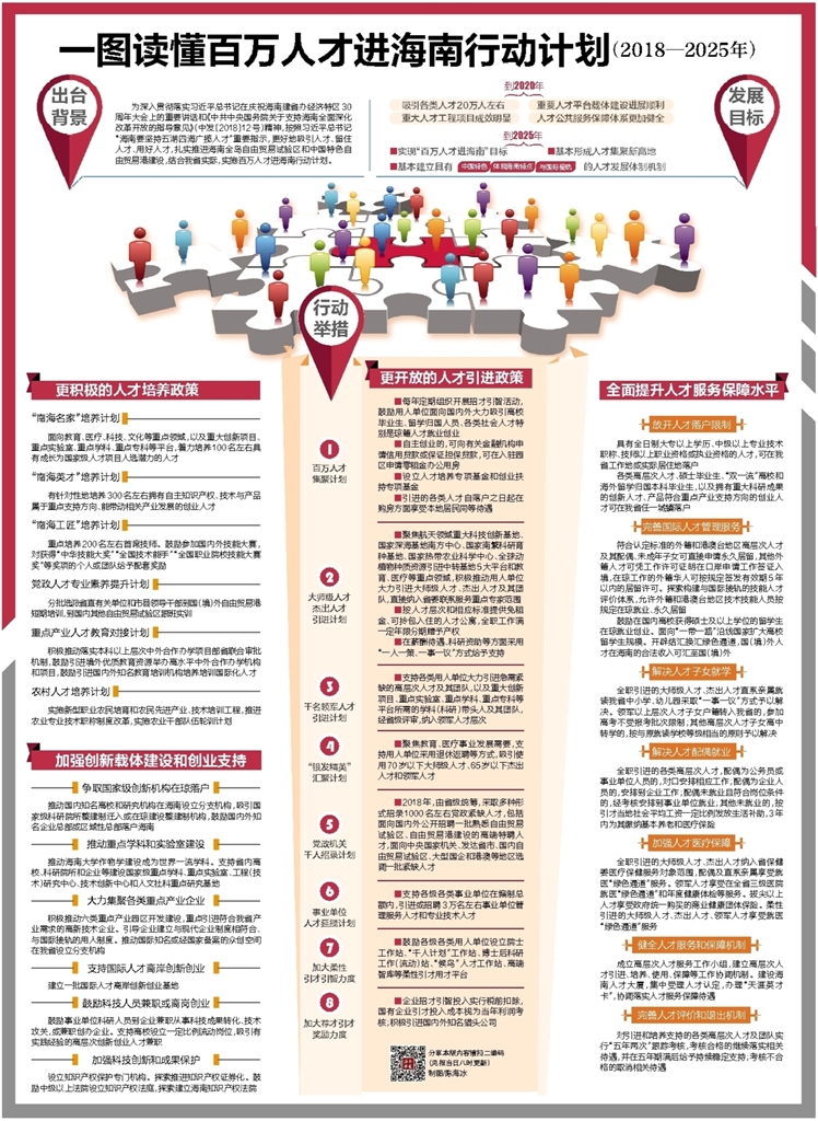 为深入贯彻落实习近平总书记在庆祝海南建省办经济特区30周年大会上的重要讲话和《中共中央国务院关于支持海南全面深化改革开放的指导意见》(中发〔2018〕12号)精神,按照习近平总书记“海南要坚持五湖四海广揽人才”重要指示,更好地吸引人才、留住人才、用好人才,扎实推进海南全岛自由贸易试验区和中国特色自由贸易港建设,结合我省实际,实施百万人才进海南行动计划。