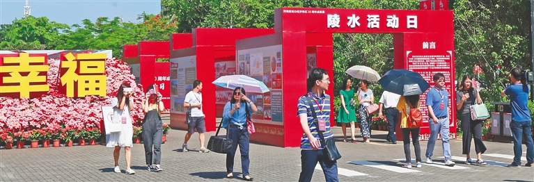 “这是海南的第一个红色政权,它就诞生在陵水。”今天下午,烈日当空也抵挡不住群众的热情,在“陵水活动日”展板前,来自广州的游客骆顺君一边观看着眼前的图片,一边向身旁8岁的儿子复述展板上的“陵水故事”。