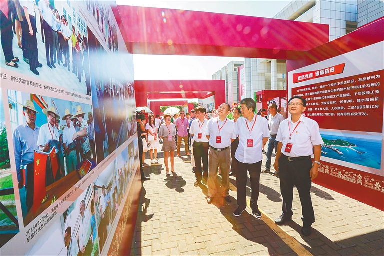 当天,省博物馆门前前来观展的群众络绎不绝。他们当中,有长居于此的海口市民,有初来乍到的外地游客,还有许许多多在椰城工作的陵水人。凝望一幅幅精美的展板,大家仿佛走入时空隧道,领略“珍珠海岸”的蜕变。