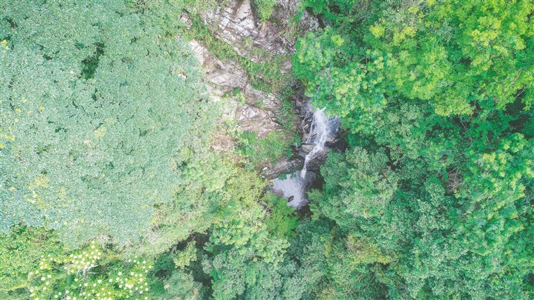 瀑布周围怪石林立,形状各异,千姿百态。瀑布周围的树木茂密,野花盛放,处处花香鸟语不断。
