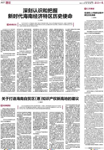 深刻认识和把握 新时代海南经济特区历史使命