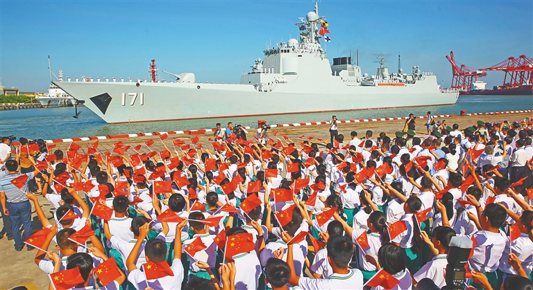 海口舰2005年12月26日命名并入列海军以来,以和平之师、文明之师、威武之师的良好形象,打响了一张靓丽的中国海军名片。此次海口舰在海口进行为期3天的访问,并开展“舰艇开放日”、国防教育宣讲等系列活动,推进军民融合双拥共建工作。