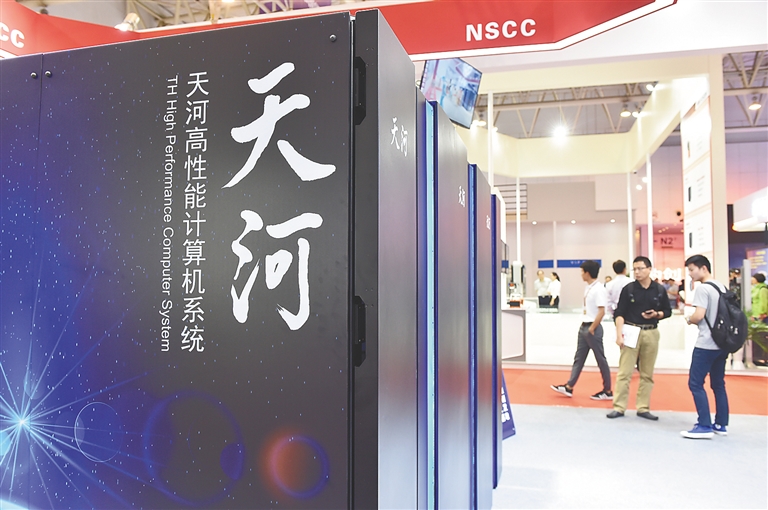 正在天津举行的第二届世界智能大会上,国家超算天津中心对外展示了我国新一代百亿亿次超级计算机“天河三号”原型机,这也是该原型机首次正式对外亮相。