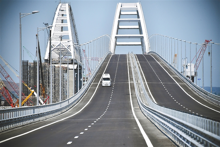 这座大桥横跨刻赤海峡,连接俄罗斯本土与克里米亚半岛。美国和欧洲联盟继续谴责俄方借建桥巩固对克里米亚的“非法占领”,重申“克里米亚属于乌克兰”。