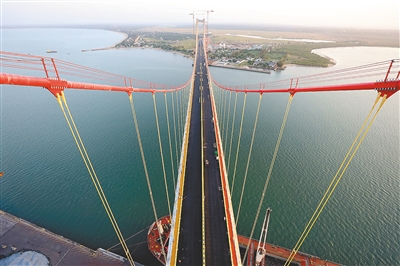 由中国路桥公司承建的中国在莫桑比克最大基建项目——马普托跨海大桥及其连接线工程预计将于2018年6月正式通车。这座总长3公里多的跨海大桥建成后,将以680米长的主跨,成为非洲主跨径最大的悬索桥,并极大便利马普托和对岸卡腾贝之间的交通。 新华社记者 王腾 摄