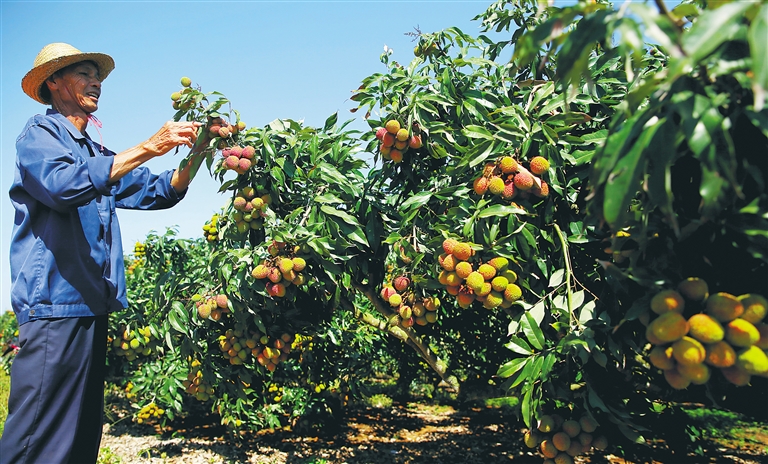 “一开始没有掌握种植管理技术,比如什么时候施肥、撒药都比较盲目,荔枝的产量自然一般。”有着21年种植荔枝经验的劳笃孝回忆,他的困难也是许多种植户的困难,农场得知情况后,就派出了技术人员对荔枝果农们进行种植培训。