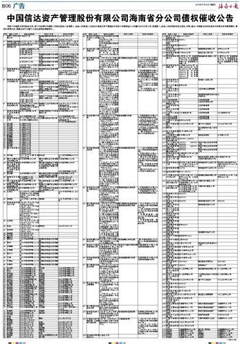 中国信达资产管理股份有限公司海南省分公司债权催收公告