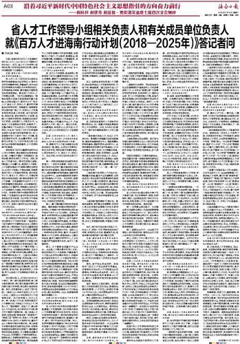 记者:《行动计划》以百万人才进海南引才战略为主要抓手,请问对这“百万人才”有什么总体的考虑?
