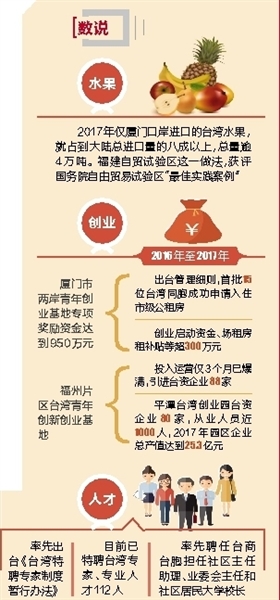 2017年仅厦门口岸进口的台湾水果,就占到大陆总进口量的八成以上,总量逾4万吨。福建自贸试验区这一做法,获评国务院自由贸易试验区“最佳实践案例”