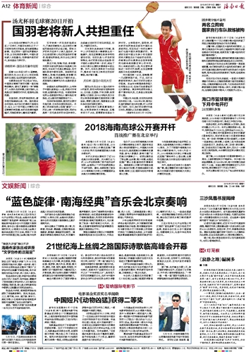 海南日报 体育新闻综合 012 2018-05-191 2018年05月19日 星期六