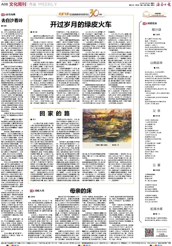 呼啦啦的时间仿佛一下子倒退了三十年,那时还是我第一次离开家门,也是我第一次感受到了远方。正因为有了远方后来我才知道世界上还有一种可以承载梦想的绿皮火车。多年来,它一次次地开过我的梦境,把我带到蜿蜒曲折的铁轨旁,遗憾的是,我却一次都不曾跃上它的车厢,去往远方。