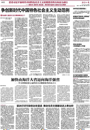 海南日报 沿着习近平新时代中国特色社会主义思想指引的方向奋力前行——新标杆 新使命 新征程·贯彻落实省委七届四次全会精神 002 2018-05-201 2018年05月20日 星期日