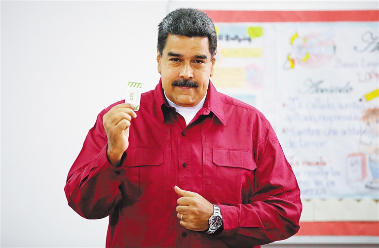5月20日,委内瑞拉总统马杜罗在加拉加斯一投票站参加投票。