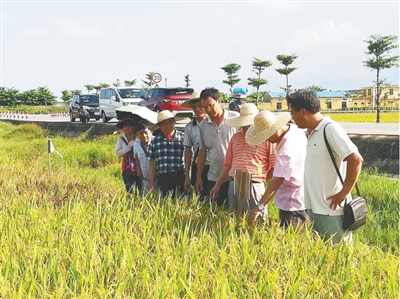 2015年,省农科院育成耐盐杂交稻“特优458”,在海水倒灌区盐度达0.5%的文昌市罗豆洋示范种植60亩,平均产量达323.3公斤/亩。去年,育成的耐盐杂交稻“特优361”和“广8优305”在文昌铺前镇山尾村盐度达0.8%的田洋示范50亩,平均亩产382.6公斤。