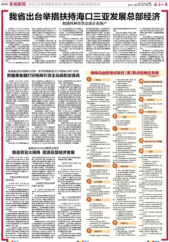 | 第003版:本省新闻关注2018海南自贸区(港)百日大招商(项目)活动 |