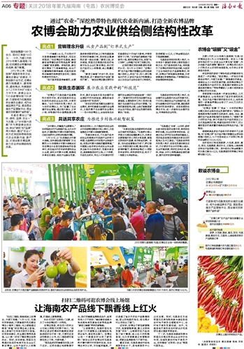 | 第006版:专题关注2018年第九届海南(屯昌)农民博览会 |