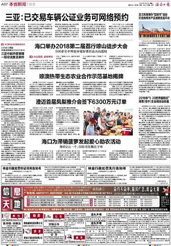 | 海南日报 本省新闻综合 007 2018-05-211 2018年05月21日 星期一 |