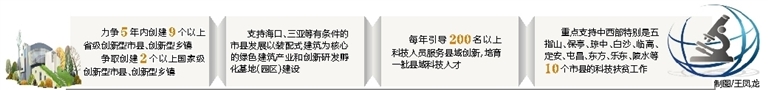 《方案》透露,支持海口、三亚等有条件的市县发展以装配式建筑为核心的绿色建筑产业和创新研发孵化基地(园区)建设;支持有条件的市县建设国家级高新技术产业示范区、农业科技园区和“互联网+”产业园区。启动“海南省县域创新驱动发展引导资金专项”项目,支持“海南省地方科技发展引导专项资金”项目应用示范于县域,积极引导财政资金向县域创新工作倾斜。深入推行科技特派员制度,围绕县域优势特色产业需求,加大科技特派员、“三区”人才项目的支持力度,每年引导200名以上科技人员服务县域创新,培育一批县域科技人才。对高校毕业生、服务期满的大学生村官和“三支一扶”大学生回归涉农行业创新创业,给予相关的政策扶持。重点支持中西部特别是五指山、保亭、琼中、白沙、临高、定安、屯昌、东方、乐东、陵水等10个市县的科技扶贫工作。每年选派科技特派员、“三区”人才为贫困市县提供专业技术服务,围绕特色产业发展实施科技扶贫行动,强化科技创新对精准扶贫、精准脱贫的支撑引领作用,针对脱贫攻坚中存在的科技短板,加大攻关和成果转化力度。