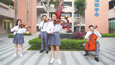 “虽然我们不是音乐专业人士,但学校经常为我们提供表演的机会和舞台。”海中管弦乐队大提琴手王若询说。