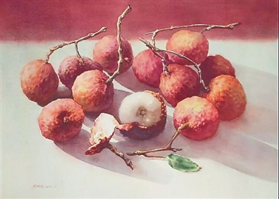 在海南画坛,有一位以水彩画荔枝见长的画家,他就是琼台师范学院美术系讲师王开继。在他的荔枝水彩画作中,细腻饱满的荔枝晶莹剔透,似绛红仙子永驻。