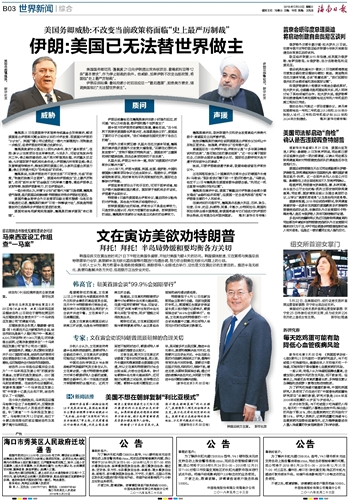 海南日报 世界新闻综合 011 2018-05-231 2018年05月23日 星期三