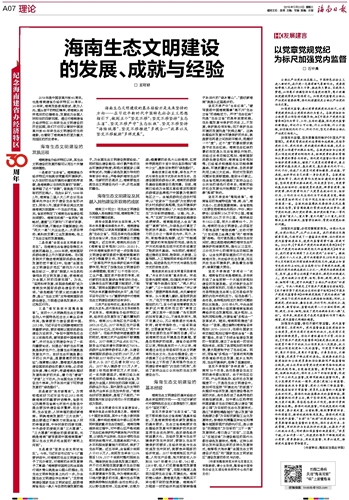 海南生态文明建设 的发展、成就与经验