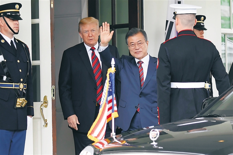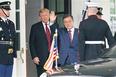 文在寅当天与特朗普共同会见记者时表示,韩方期待美朝领导人会晤,并将全力支持会晤取得成功。