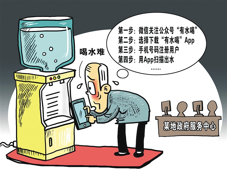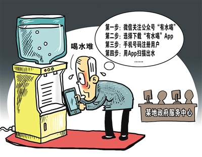 设置饮水机本是政务服务中心提升服务水平、改善服务环境的便民措施,但在未央区政务服务中心,办事群众只能“望水兴叹”。水都喝不上,为民解忧、为民服务又何从谈起?喝水的“高难度”显然违背了“为民”的初衷,也凸显了服务痼疾,更折射了政府部门的形式主义作风。群众利益无小事。作为政府服务部门,还须以“天下大事必做于细”的态度,真心诚意地为人民群众办实事、做好事、解难事。这正是: